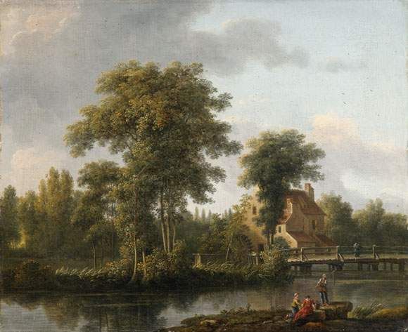 | Pêcheurs au bord de la rivière près du moulin à eau | |