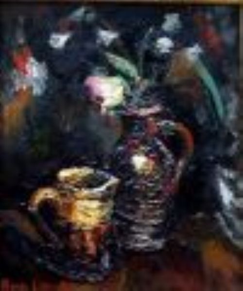 Nature morte au pichet et au vase de fleurs