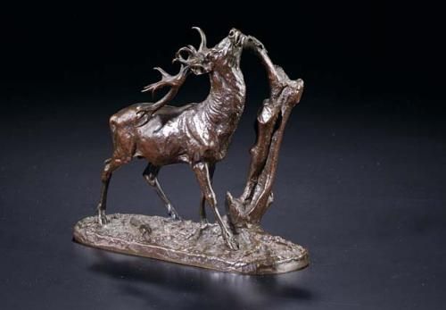 A BRONZE SCULPTURE OF A STAG, FRENCH SCHOOL