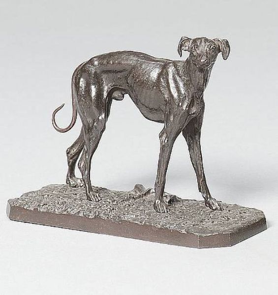 A bronze figure of standing racing greyhound