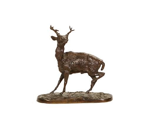 A late 19th century bronze model of a stag