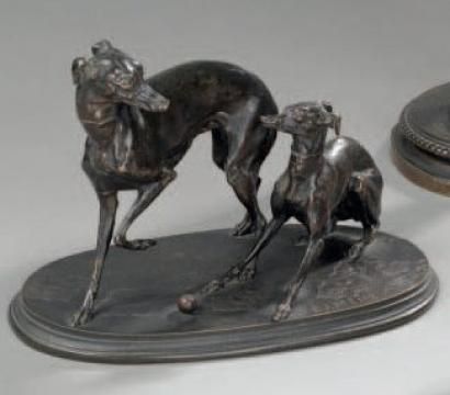 Jiji et Gisèle, deux levrettes jouant avec une balle