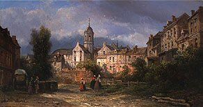 HOLLÄNDISCHE STADTANSICHT MIT MARKTFRAUEN
