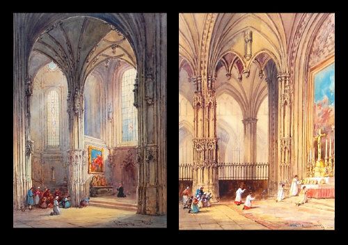 Worshippers at the chapel of St Louis, Lyon cathedral and Worshippers at St Pierre, Caen, Normandy