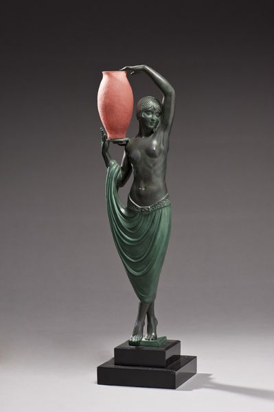 Lampe à décor d'une vestale debout tenant un vase sur l'épaule droite