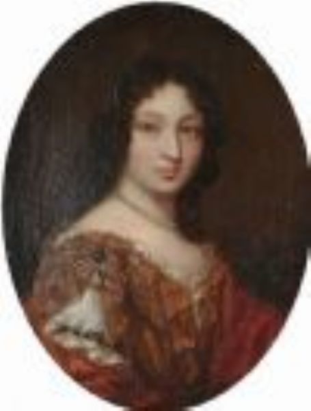 Portrait of a lady, half-length, in a gold dress, a red wrap and a pearl necklace