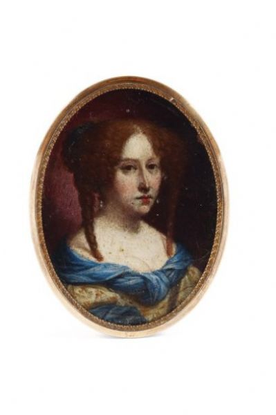 Portrait d'Henriette-Anne d'Angleterre, duchesse d'Orléans en robe de soie brochée d'or et voile bleu