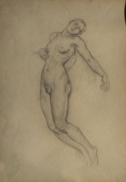 Étude de nu femme cambrée, la tête inclinée vers la droite