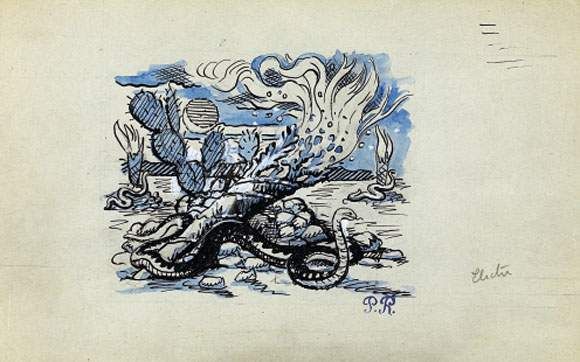 Pen and blue watercolour with white highlights