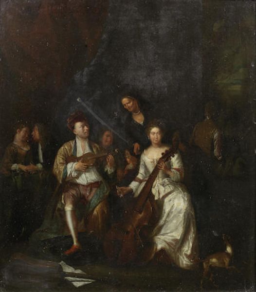 Figures in an interior playing stringed instruments
