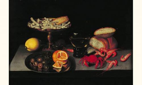 | Nature morte à l'étrille, crevettes et sucreries sur un entablement | |