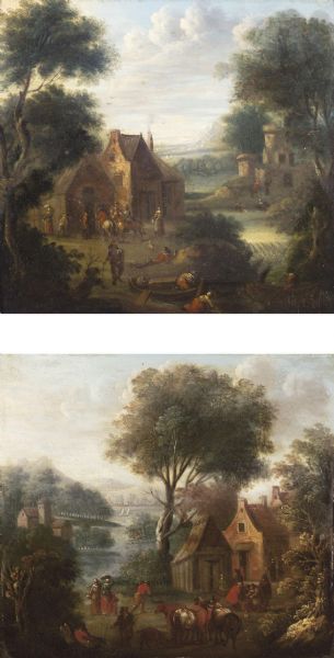 | RIVER LANDSCAPES WITH PEASANTS AND THEIR ANIMALS BEFORE COTTAGES | |