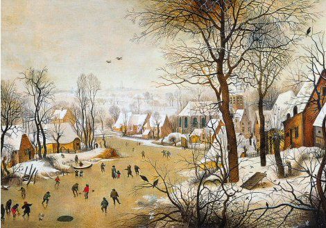 WINTERLANDSCHAP MET SCHAATSERS EN VOGELKNIP