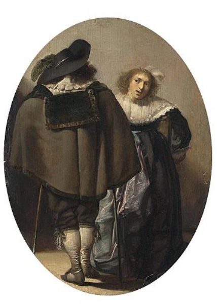 AN ELEGANT COUPLE CONVERSING IN AN INTERIOR