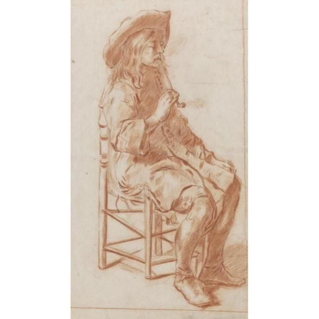 | A SEATED MAN IN A HAT, SMOKING A PIPE | |