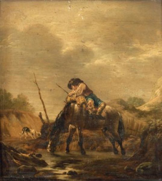 | Paysage avec un homme prêt à monter sur un cheval | |