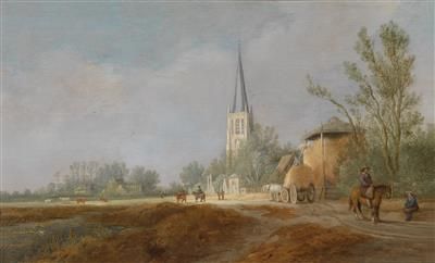| View of a village with the Church of Voorschoten (between The Hague and Leiden) and a haystack being loaded | |