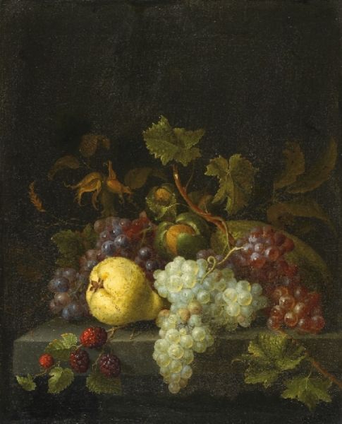 STILL LIFE WITH GRAPES, PEAR, BLACKBERRIES AND NUTS