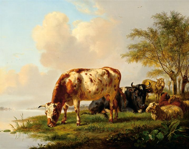 Landscape with cows and sheep