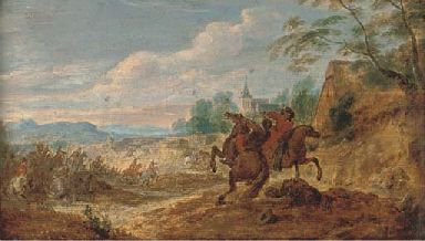 | A wooded landscape with a cavalry skirmish | |