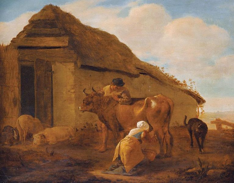 A LANDSCAPE WITH A MILKMAID, A COW AND LIVESTOCK