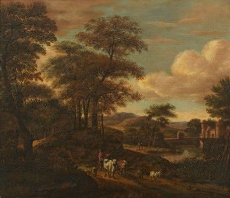 Landskap med figurer och boskap