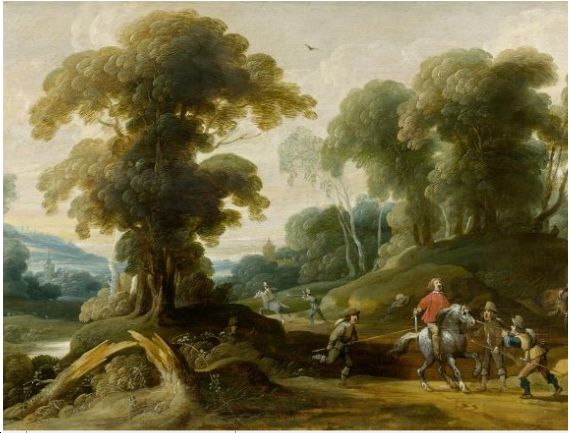 Landscape with bandits attacking.