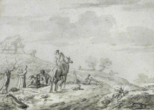A Horseman in a Rocky Landscape with collector's mark "AC"