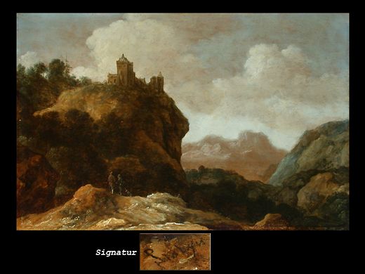 GEBIRGSLANDSCHAFT MIT BURG UND FIGURENSTAFFAGE