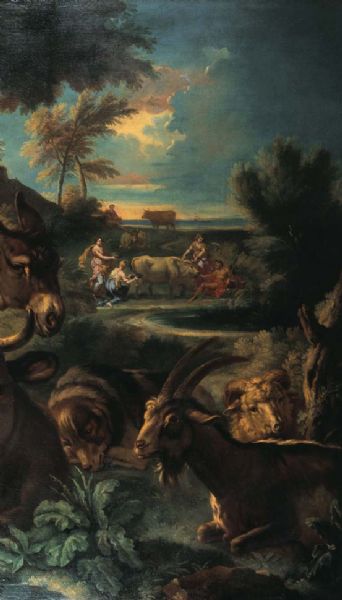 LANDSCHAFT MIT RINDERN, PFERD