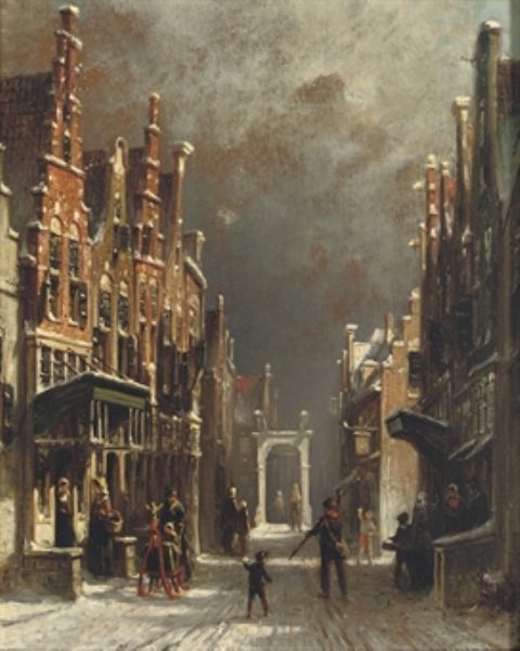 | FIGURES IN THE SNOW COVERED STREETS OF AMSTERDAM; A SUNNY VIEW OF OUDEWATER (A PAIR) | |