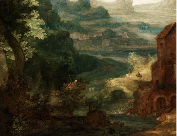 LANDSCAPE WITH TREE VALLEY, RUIN AND figural