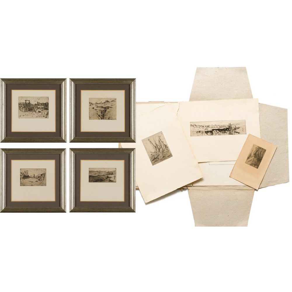 4 framed, 19 by 20cm excluding frame; 30 by 31cm excluding frame; 3 unframed, sheet size: one 21,5 by 14cm and two 38 by 28,5cm; portfolio: 40 by 31cm | |