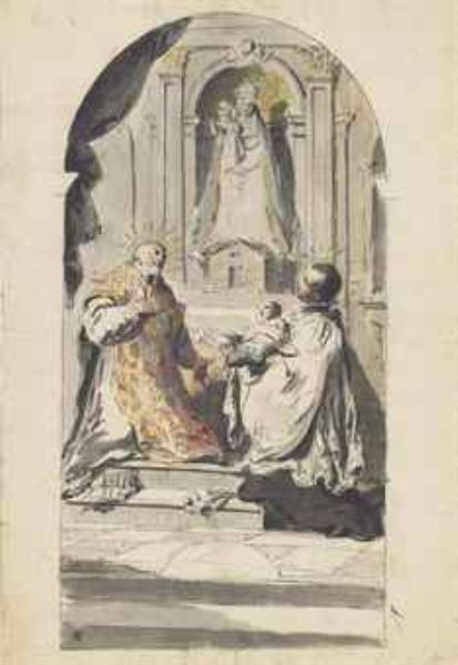 The Madonna of Loreto adored by a bishop saint, with a text from Revelations, and Saint Stanislaus Kostka