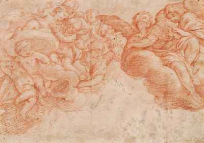 Eine Gruppe von Engeln und Putti auf Wolken