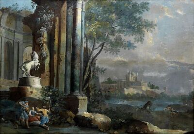 Two landscapes with ancient ruins, pendants