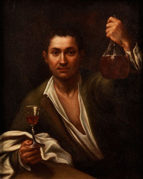 MANN MIT GLAS UND FLASCHE - ALLEGORIE DES GESCHMACKSSINNS