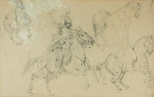 Szkice koni i ułana na pędzącym koniu