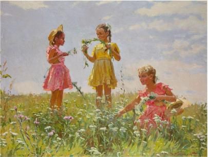 Jeunes filles dans un pré