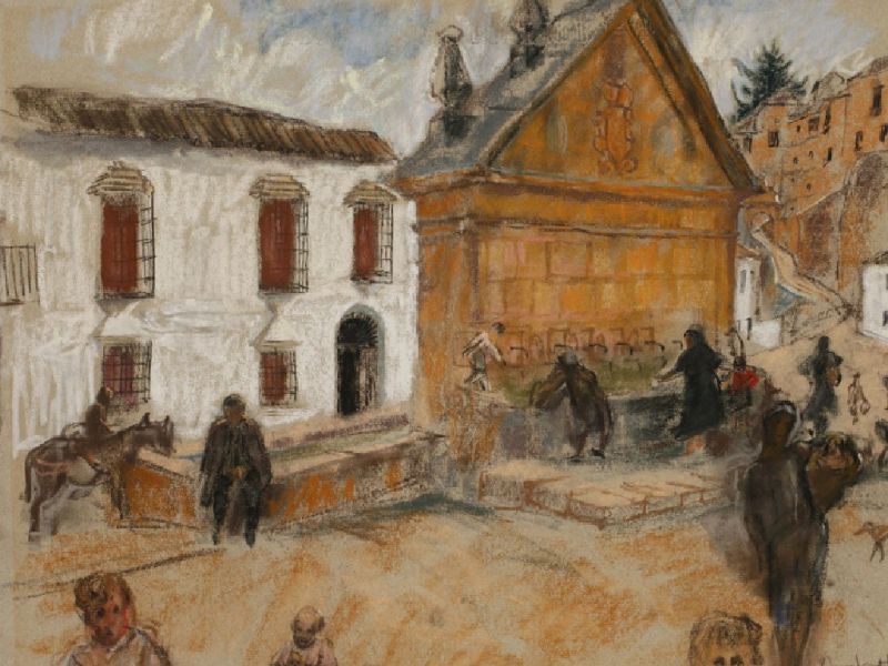 Pastel on grey paper
