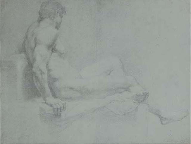| A seated academic nude turning away, in profile to the right | |