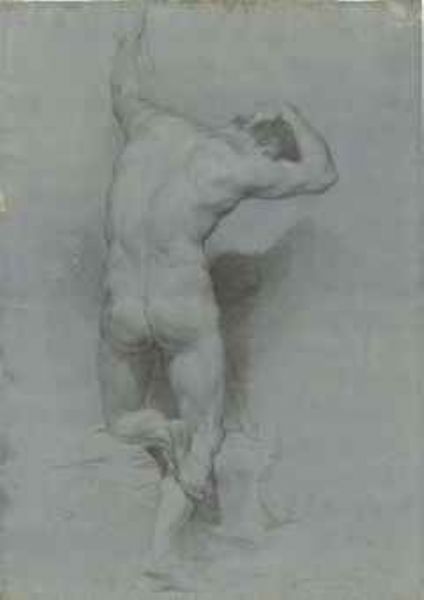 | Academic study of a male nude, half-kneeling, seen from behind | |