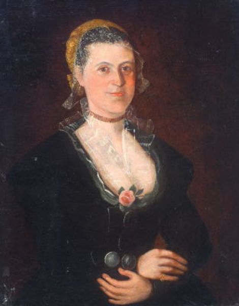 Portrait einer Dame im schwarzen Kleid mit Spitzenhaube, Bruststück