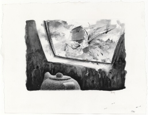 | Pencil indian ink and wash on paper | |