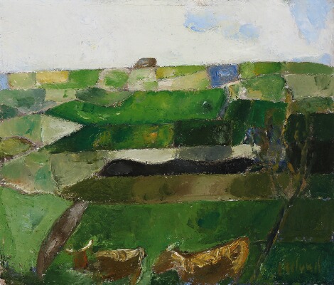 Grønt landskab med køer