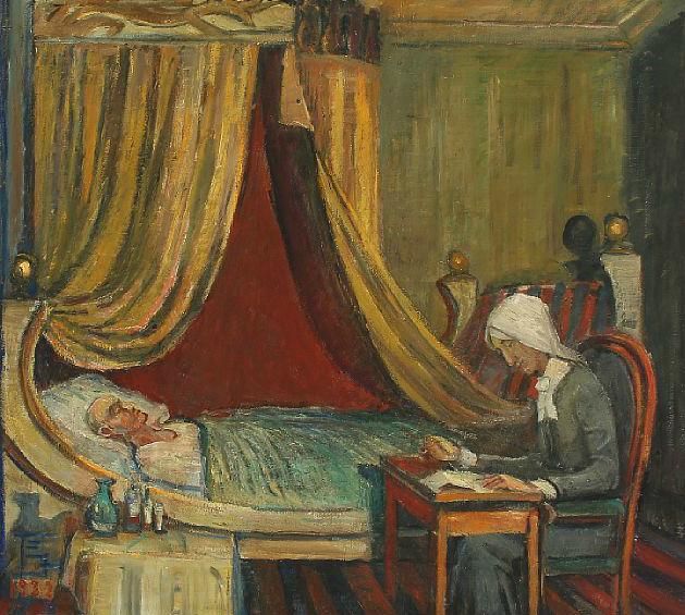 Deathbed scene from the novel "Adam Homo"