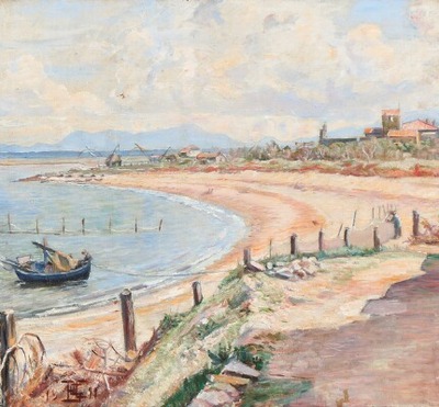 The mouth of the Arno at La Marina di Pisa. Signed with monogram and dated 1911. Oil on canvas. 58×63 cm. | |