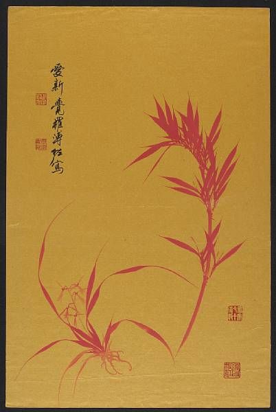 Ink Red ink on gold paper