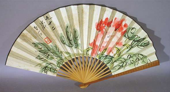 FOLDING FAN WITH DEPICTION OF PEONIES
