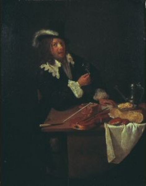 Portrait d'un joueur de violon devant une table